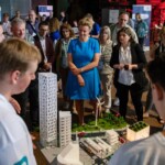 Ein besonderes Highlight der Veranstaltung war der Besuch von NRW-Wissenschaftsministerin Ina Brandes, die sich die Zeit nahm, alle Modelle persönlich zu begutachten. Sie zeigte sich beeindruckt von den kreativen Lösungsansätzen und lobte die Teilnehmer:innen für ihren Einsatz: „Solche Wettbewerbe machen die MINT-Welt erleb- und erfahrbar. Sie wecken das Interesse der Schüler:innen an technischen und naturwissenschaftlichen Berufen, was enorm wichtig ist, um die Herausforderungen der Zukunft zu meistern.“